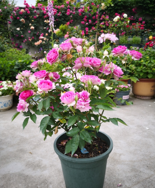 而月季苗圃里苗,苗床都会覆盖防草垫,育苗的土也都是用的月季专用土,差一些的也是用营养土,而每茬花败后,都是人工一盆一盆修剪的。