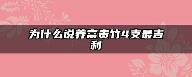 本文重点详解为什么说养富贵竹4支最吉利的知识,希望能给你一点引导,更多与为什么说养富贵竹4支最吉利相关的知识,尽在蓝妖花园。
