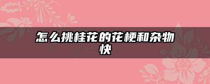 本文重点详解怎么挑桂花的花梗和杂物快的知识,希望能给你一点引导,更多与怎么挑桂花的花梗和杂物快相关的知识,尽在蓝妖花园。