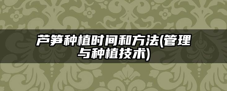 芦笋种植时间和方法(管理与种植技术)