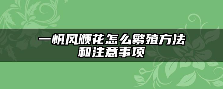 一帆风顺花怎么繁殖方法和注意事项