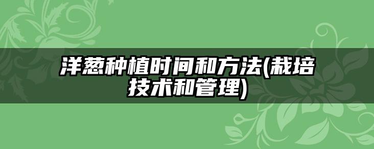 洋葱种植时间和方法(栽培技术和管理)