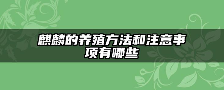 麒麟的养殖方法和注意事项有哪些