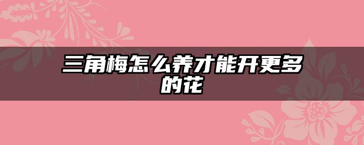 本文重点详解三角梅怎么养才能开更多的花的知识,希望能给你一点引导,更多与三角梅怎么养才能开更多的花相关的知识,尽在蓝妖花园。