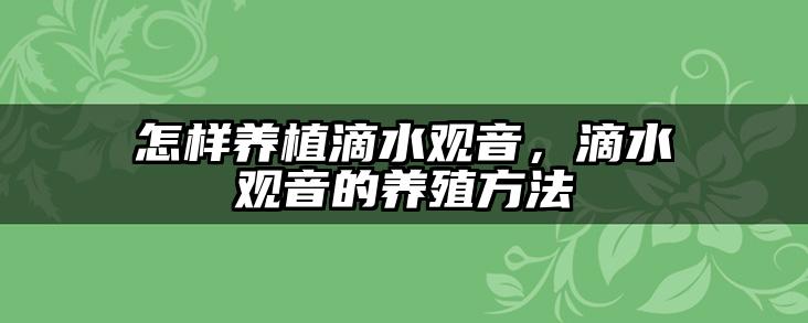 怎样养植滴水观音,滴水观音的养殖方法